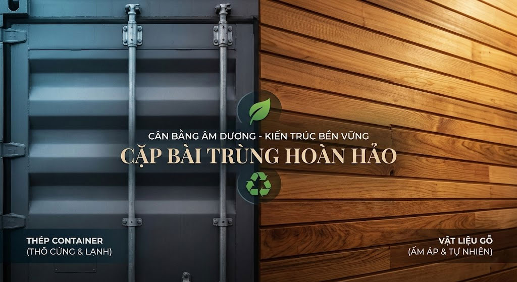 - Giá trị bền vững: Cả thép container và gỗ (đặc biệt là gỗ nhựa hoặc gỗ tái chế) đều là những vật liệu chủ đạo của xu hướng kiến trúc xanh, bền vững.