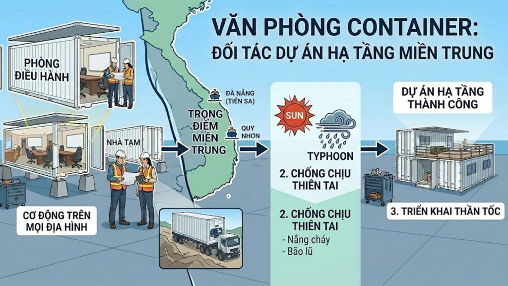 1. Tại sao các dự án hạ tầng miền Trung ưu tiên sử dụng văn phòng container?