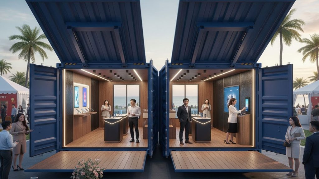 Trong thế giới sự kiện và quảng bá thương hiệu (branding), việc tạo ra một không gian ấn tượng, khác biệt và có tính linh hoạt cao là yếu tố quyết định sự thành công. Pop-up Container (hay còn gọi là container biến hình) đã trở thành xu hướng toàn cầu, cho phép các thương hiệu triển khai các cửa hàng tạm thời (Pop-up store), gian hàng triển lãm hay phòng trưng bày sản phẩm một cách chuyên nghiệp tại bất cứ đâu: từ bờ biển, công viên cho đến các trung tâm triển lãm sầm uất.