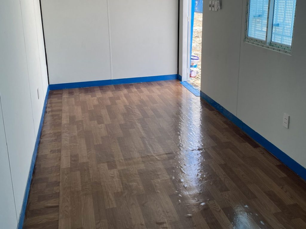 - Lưu ý: Bắt buộc phải chọn loại sàn có cốt HDF (High Density Fiberboard) chống ẩm tốt và phải xử lý kỹ lưỡng lớp sàn nền ban đầu của container (thường là ván ép) để chống mối mọt và ẩm mốc từ dưới lên.