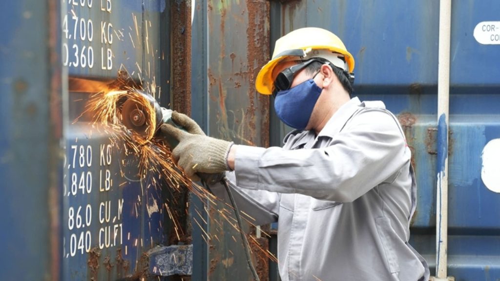 3. Quy trình phục hồi thẩm mỹ và kết cấu container tại xưởng kỹ thuật