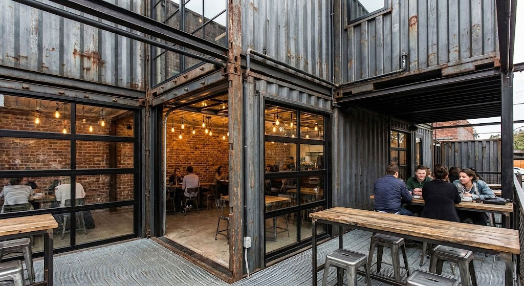 1. Mẫu cafe container phong cách Công nghiệp (Industrial Style)